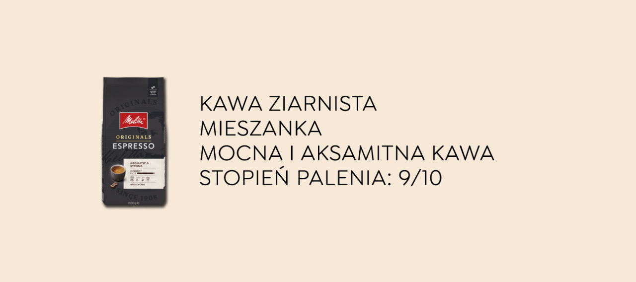 Odkąd Melitta wynalazła pierwszy filtr do kawy w 1908 roku i położyła podwaliny pod współczesną kulturę kawową, jesteśmy zaangażowani w zapewnienie najwyższej jakości kawy. Zgodnie z tym standardem jakości i przyjemności skomponowaliśmy i wypiekliśmy Twoje ulubione odmiany dla Melitta Originals. Możesz to poczuć w tej mocnej i aksamitnej kawie, pakowanej natychmiast po wypaleniu, która przenosi pełnię aromatu do Twojej filiżanki.
