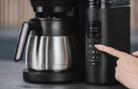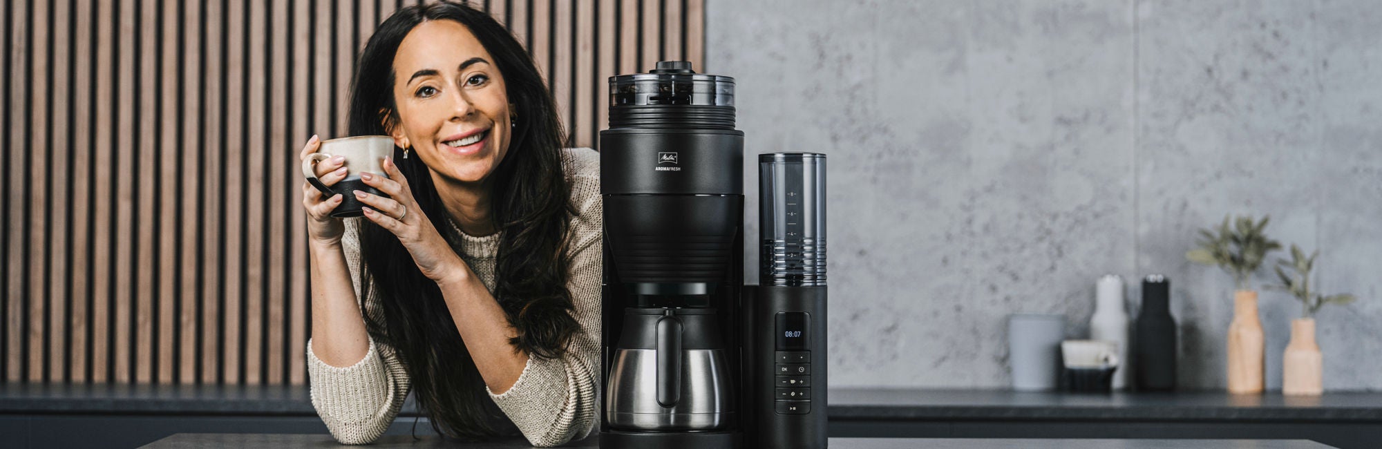 Melitta® AromaFresh Therm Pro to synonim świeżo zmielonej kawy, maksymalnego komfortu obsługi, najnowszej technologii i długotrwałej przyjemności z picia kawy. Trwały ceramiczny mechanizm mielący sprawia, że kawa rozwija swój pełen smak – a wszystko to dzięki doskonale wyważonej powierzchni kontaktu kawy z wodą niezależnie od ilości przygotowywanego napoju (2–8 filiżanek). Wyjmowany pojemnik na wodę, nowoczesny kolorowy ekran TFT, dwie zintegrowane funkcje minutnika i dzbanek termiczny o podwójnych ściankach zapewniają maksymalny komfort użytkowania. Teraz możesz długo cieszyć się najpełniejszym aromatem kawy z ekspresu z filtrem, przygotowanej dokładnie tak, jak lubisz!
